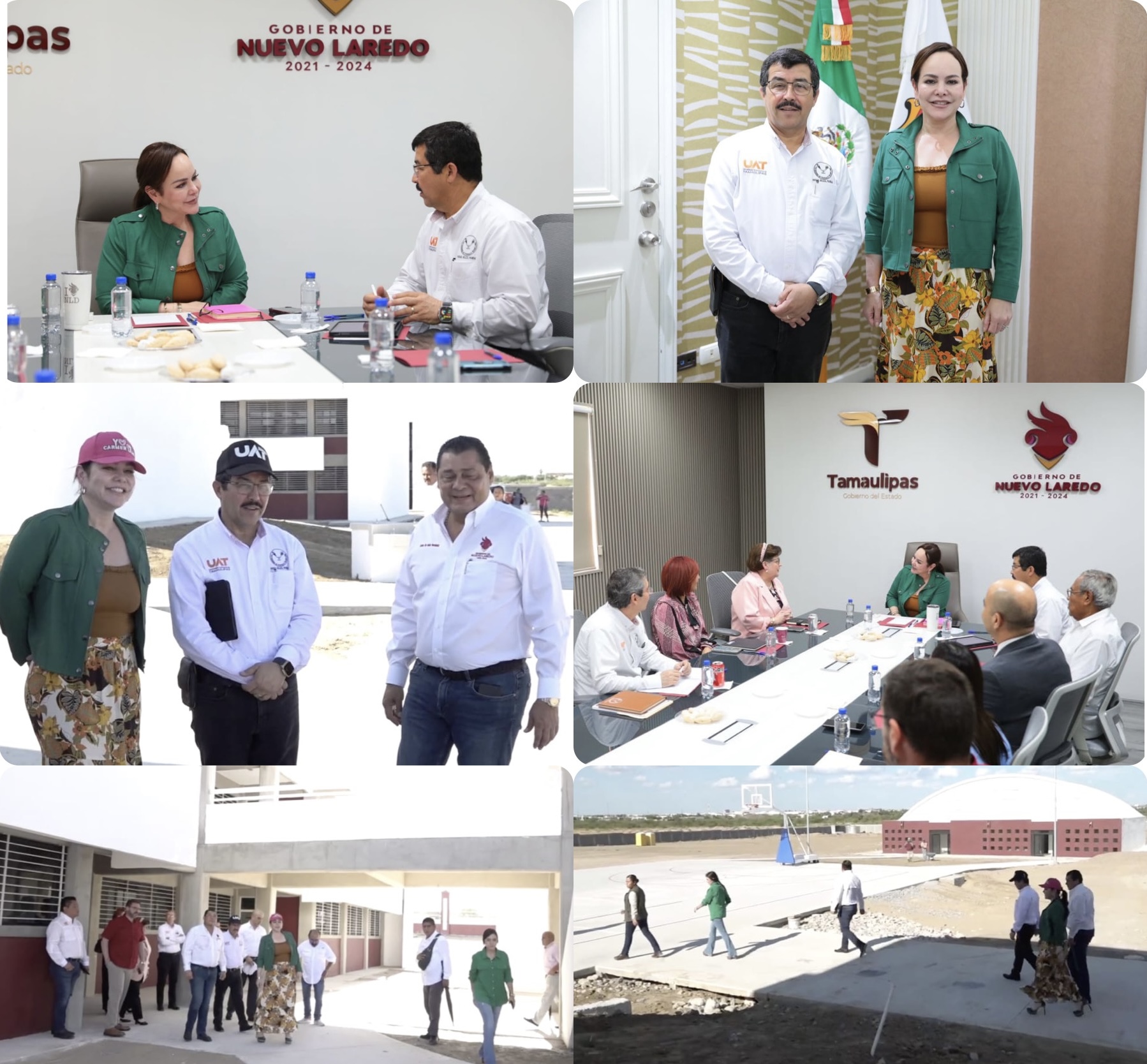 Durante la reunión efectuada en las oficinas de la Presidencia Municipal, se destacó que el Ayuntamiento de Nuevo Laredo iniciará los trámites para entregar en comodato a la UAT la nueva escuela preparatoria ubicada en el sur de esta ciudad fronteriza.